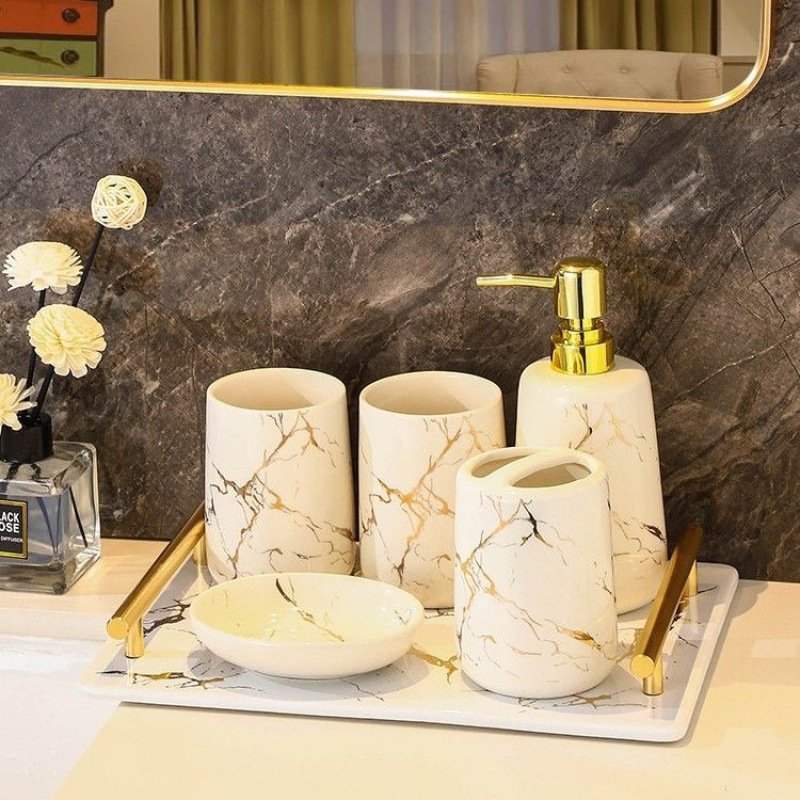 Ceramic bathroom five-piece toiletry set